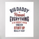This is the perfect present for Big Daddy. Featuring the phrase Big Daddy Knows Everything If He Doesn't Know He Makes Stuff Up Really Fast. Cool gift for Big Daddy, Father and Grandfather. This gift funny is perfect to wear on Father's Day, Grandparents Day, Christmas and family holidays parties.