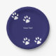 Why not add a touch of fun to your party and start with this blue paw print plate. The strong blue colour will stand out on a white table cloth and the prints are a sharp and clear design. You could have a blue and white dog party theme and create something a little different! You can also alter the white footprints to another bespoke colour just click on the edit design link and choose a background colour from the left.