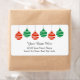 Big elegant Christmas address labels for Holidays. Personalised template with Xmas tree decorations. Cute seasonal sticker design for gifts, cards, party invitations and more. Classy red and green Christmas balls hanging on a string illustration.