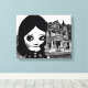 Big eye Goth girl Haunted house Original fantasy dark art ink illustration Canvas Print
