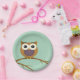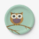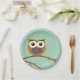 Big Eyed Owl on Branch with Full Moon Paper Plate