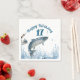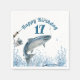 Big fish jumping out of blue water with fishing pole for 17th birthday party.