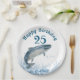 Big salmon fish jumping out of splashing blue water for 25th birthday party.