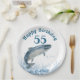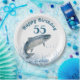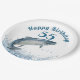 Big salmon fish jumping out of splashing blue water for 55th birthday party.