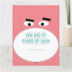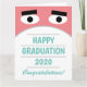 Big funny Happy Graduation class of 2024 face mask greeting Card. Humorous cartoon eyes card for high school grad, senior, college graduate, university student etc. Add your own custom message on the inside and mail it online directly from Zazzle to the recipient. Custom background and text colors. Extra large oversize card. Also available in other sizes. Symbolic card in times of quarantine and social distancing.