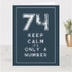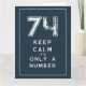 Big funny keep calm meme 74th Birthday card. Fun Keep Calm and Carry On quote for 74 year old. Make your own age specific spoof with custom age number. Cool greeting card idea for men or women. Vintage typography template. Custom colour background. Personalise with message inside. Oversized card design.