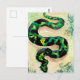 traditional watercolor artwork of a big green and black coloured snake on a postcard.