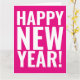 Big Happy New Year card with fun modern typography. Personalised greeting card with custom inside message. Neon pink or custom background colour. Great for wishing friends and family a great start of the new year. Large bold text design.