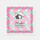 A lady in her Derby hat against a background of hot pink, green and white diagonal blocks of stripes on these party napkins for a Derby themed bridal shower party. Use for any occasion, just change the wording. (Lady image can be deleted.) MATCHING items in our store.