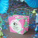 Take Out style party favour box with a lady in her Derby hat on the side with your message against a background of hot pink, green and white diagonal blocks of stripes. A fun way to thank guests for coming to your Derby themed bridal shower or change the wording and use for a birthday party or any occasion. Dimensions: 2" wide x 2" long x 2.75" high. MATCHING items in out store.
