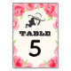 Table numbers featuring a border of pinkish roses at the top and bottom on an ivory background (change to any colour) and a silhouette of a lady in her Derby hat (lady can be removed.) **NOTE: CHANGE THE TABLE NUMBER, place in your shopping cart for each number you want to order. MATCHING items in our collection.