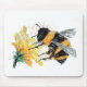 colourful watercolor artwork of a big honey bee collecting pollen from a yellow flower on a mouse pad