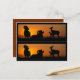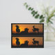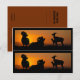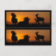 A small herd of bighorn sheep settle down for the night. Their silhouettes stand against the blazing sunset behind them. Computer art by Kathie Miller.