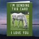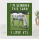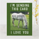 Birthday card with a funny horse message! I'm sending this card big horse (because) I love you. Image is a photograph of a white horse grazing in a field.