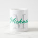 Big jumbo mug gift with custom name monogram. Personalised coffee cup for teach, tutor, coach, educator, wife, girlfriend, boyfriend, coworker, colleague, employee, school teacher, friend, mum, dad, husband, sister, aunt, uncle, grandma, grandpa, boss etc. Enormous size drinkware design for men, women and kids. Super XL oversized mugs for home or office. Also great as Birthday party present or thank you favour. Glamourous design with stylish script lettering.