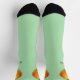Big mango on your socks. Along with your name, text, or slogan in dark green serif font below it. Sweet juicy fruit on light green background.