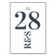 This ultra modern bold typography fantastic clean, tidy well designed minimal yet very playful bold table number & text placement in blue, grey and white for minimalistic style, however is customisable to other colours and is part of a unique suite and collection by Phrosne Ras Design. This would be great for those planning a fun black & white event, with this wedding table number being bold and was inspired by fun-loving people who love a good party and don't mind straying from tradition.