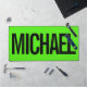 Big neon green mouse pad with custom name