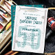 Fishing theme adult birthday party invitation template with big number for age in teal blue-green. White cards have grunge style font printing and saltwater fish images and a fishing rod. Sample is "surprise" but can easily be changed to "over the hill" or whatever you choose. Use his first name only or full name. His age is printed in big numbers as the background for party info, which is added in paragraph form. Include spaces as needed. Reverse is dark teal with fishing pattern.