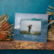 Photo gift for newlyweds.  Standing photo frame with big waves background.  Size 8x10, horizontal plaque with easel and photo template with text.  Use a landscape / horizontal picture of the couple which will be framed by blue lines.  Big, crashing, ocean waves and blue sea water is the background for off-white text.  Include names of the couple in fancy script with date of event printed beneath.  The photo will be printed onto the plaque to preserve the memories of the special day.  Makes a nice keepsake gift for any couple.