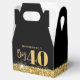 The Big 4-0 or 3-0 or 5-0 any age glam black and gold luxe glitter personalised birthday party favour box with any name, age, and party date featuring our bold and modern stripe at the bottom with pieces of glitter confetti dust sprinkled a bit above with crisp, funky, cool and modern oversize script calligraphy brush font. "Thank You" message and party date is on the back. Colours and fonts can be edited with the Zazzle Template Design Tool.