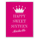 Big oversized Sweet 16 Birthday card with cute princess crown. Hot Neon Pink Happy 16th Birthday greeting card for girls. Girly design with stylish script typography for name. Personalised name and wishes or message on the inside. Fun sixteenth Birthday celebration greeting card for teenage kids turning sixteen. Make your own unique card for daughter, granddaughter, sister, stepdaughter, cousin etc.