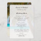 Big palm tree wedding menu template with speciality paper upgrade options. This menu will be printed on card stock and comes with white envelopes. Palm tree at the tropical ocean shore is the background image on front, and in full colour on the reverse. Easily fill in the templates to complete reception menu courses.