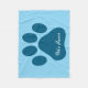 Dog blankets personalised with your fur buddy's name on a big paw print. Paw print. Customise text and colour online with a few clicks of the mouse. If you need help customising contact designer at ArtByLiz@gmx.com before your order and it will be customised for you at no additional cost.