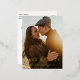 Vertical wedding save the date postcard you can personalise with your photo. Save the date is written across the postcard in a combination of elegant gold foil font and a swirly golden script. Add your names and wedding date in an elegant timeless font. Gold foil save the date postcard personalised with a photo covering the card.