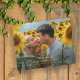 Photo wedding guestbook personalised with your romantic photo printed on the whole cover along with your names and wedding date and location in gold foil against a transparent black overlay to make the text pop and gold foil letters on the black spine. Gold foil photo wedding guestbook with a minimalist design with custom gold foil text on cover and spine. Personalised photo wedding guestbook for your wedding with gold foil text printed on the bottom of your photo printed on the cover.