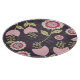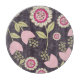 Bold pink tulips and plant pattern on dark leaf patterned background.