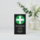 A stylish business card template with a big plus sign motif. Main company details on the front, with name and personal contact on the back.