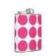 Cute and trendy Big Polka Dots Flask. This design features over-sized big circle polka dots in pink and white. Text can be added to this design to give it a personal touch.