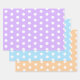 A set of three different colours of classic big polka dot patterns in pastel lavender, blue and otange perfect for baby showers, Easter, birthdays and more.