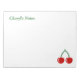 Big red cherries writing note pads with custom name. Cute memo pad stationery design for personal use, company, elementary school / kindergarten teacher Personalised writing accessories and stationary supplies for school or company office. Small and large sizes.