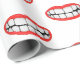 Big smile with bright red lips and white teeth on white.