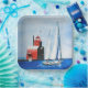 Painting of a sailboat sailing past Big Red lighthouse in Michigan's Hoiland Harbour