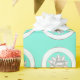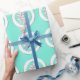 This elegant custom holiday wrapping paper features a sample a giant silver gift bow in the centre over a solid teal blue background. Two circular faux silver foil frames border the bow. A sample Merry Christmas greeting is printed at the top with a family name at the bottom. You can personalise the sticker to include your own family name or other custom text.