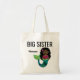 Big Sister African American Mermaid Girl Faux Foil Kids Tote Bag. Adorable little mermaid with faux foil green tail, magenta pink tank top and pink starfish in her dark black hair. Personalise with name in pretty script. Text reads BIG SISTER. Edit to change font choices. Coordinating mermaid, merman, and pirate items and party supplies. Contact for custom order requests. Mermaid, ocean, sea life themed designs. Coordinate with little sister or brother gifts. www.SamAnnDesigns.com