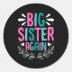 Big Sister Again Girls Sibling Announcement Funny Classic Round Sticker