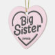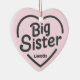Honour a cherished family connection with the "Big Sister Celebration Ornament." Crafted from fine ceramic, this ornament showcases the heartfelt title "Big Sister" inscribed within a loving heart, creating a timeless keepsake. It's a delightful way to recognise and celebrate the special bond between siblings during the holidays or any time of year. The design allows for personalisation with a name at the bottom, making it an exclusive and sentimental gift for any proud big sister.