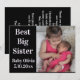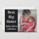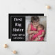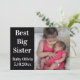 Insert photo birth announcement card featuring text that says "Best Big Sister". Great for a big brother or sister welcoming a new sibling into the family! Special message that you can personalise on the back. Trendy modern black and white design.