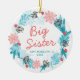 Big Sister Personalised Name Wintry Holiday Wreath Ceramic Ornament. Personalise with your custom information on both front and back.