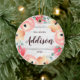 Big Sister Personalised Rustic Pink Floral Wreath Ceramic Ornament. Personalise with your custom information on both front and back.