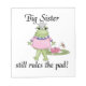 Big Sister keepsake boxes, tiles, ornaments, notebooks, throw pillows, gel mousepads, postage, stickers, and other big sister apparel and gift items featuring a girl frog and lily pad and text that reads "Big Sister still rules the pad!". Great sibling gifts for the older sis when the new baby brother or baby sister arrives!