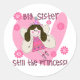 Big Sister Still the Princess T-shirts, mugs, bags, cards, buttons, stickers, key chains, pillows, and other big sister apparel and gifts with an adorable fairy princess on a big pink heart background and little pink flowers with text that reads "Big Sister Still the Princess!".
