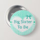 Cute blue, teal, green and white foot print baby boy baby shower button for the "Big Sister to be."