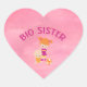 Big Sister with Baby Brother Heart Shaped Magenta Sticker