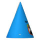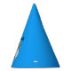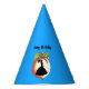 This paper party hat is vibrant blue with a big Southern juicy peach with leaves with the silhouette of a lady in hoop skirt with parasol. Customise the Happy Birthday text with the templates.