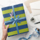 Big Stripes Lines Blue Navy Lime Green Wrapping Paper